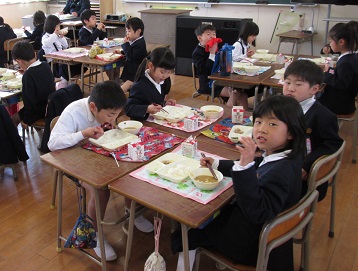久しぶりの給食、楽しみに待っていた子どもたちが多かったのではないでしょうか。今日の給食は「豚肉のおろしじょうゆかけ」「じゃこピーマン」「みそ汁」「ごはん」「牛乳」でした。今年のサンプルケースも季節感いっぱい、楽しさいっぱいになりそうです。