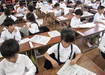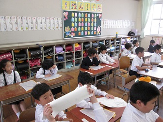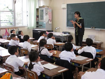 入学して1か月が経った1年生。担任の先生の顔をしっかりと見て、遠足の説明を聞いていました。1か月の学校生活の中で、どのようなことを考えたり思ったりしたのでしょうか。長い連休に入りますが、また元気に登校する姿が楽しみです。