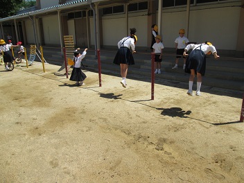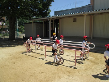 一輪車に鉄棒と、いろいろな遊具で遊んでいます。遊びの中からもチャレンジする気持ちが伝わってきます。