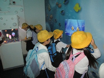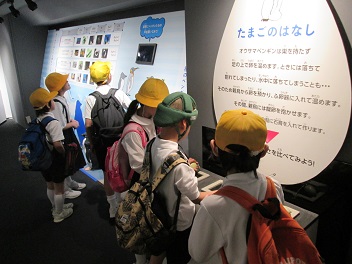 生き物の水槽だけでなく、説明が書かれた展示物もしっかりと見学していました。