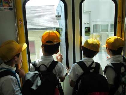 JR環状線では、じっくりと目を凝らしながら何が見えたかをプリントに書き込みました。また駅ごとに流れるメロディにも耳を傾け、「この駅の曲知ってる!」などと話す様子も見られました。