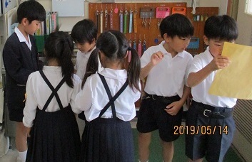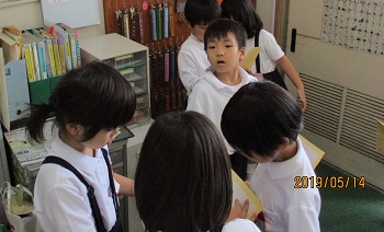 1・2年生が学校探検をしている様子です。2年生がリードして、1年生を案内していました。これからも、2学年いっしょに活動することが多くなります。いろいろな取り組みを通じて交流を広げ深めていけたら良いですね。