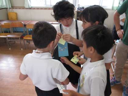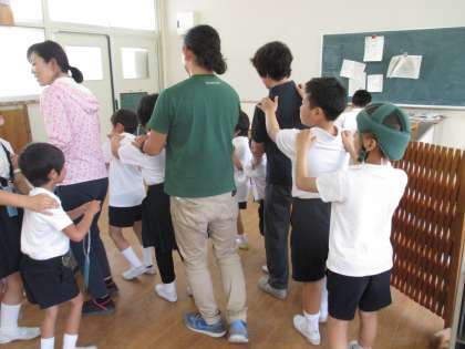 5月から始まったひまわりタイム、第1回目は遠足や体調不良などで欠席の友だちが多く、予定していたプログラムを一部変更して行いました。今回は、1年生から5年生までが揃って参加しました。