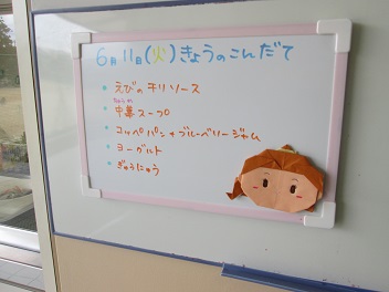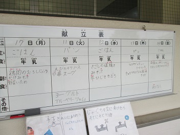 3枚目の写真は、環境委員の児童が書いた今週の献立表です。こちらも、とても上手に書けています。