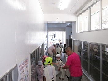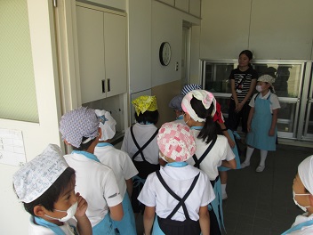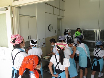 子どもたちが楽しみにしているラッキー人参。給食当番は、教室で待つ子たちよりも少し早めに見ることができます。それもラッキー!!給食室の入り口では、ラッキー人参を囲んだ子どもたちの笑顔や歓声がはじけていました。
