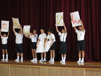ランダムに出てきた文字を並べ替えて、うまく言葉をつくることができるでしょうか。みんな、発表される答えに見入っています。