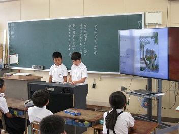 今日の読書タイムは、図書委員による読み聞かせでした。学年にあった図書を選んで、各クラスで読み聞かせをしていました。写真は3年生の様子です。