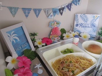 まだ梅雨は明けそうにありませんが、給食室のサンプルケースは夏です。