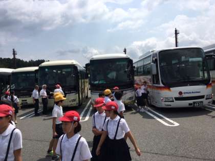 道の駅まほろばでトイレ休憩です。ここも林間の子どもたちでいっぱいです。予定より少し早く来てます。