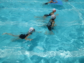 泳ぐ練習をした後は、それぞれに水の中での時間を楽しんでいます。