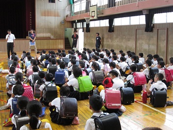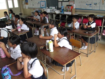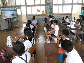 全体での訓練の前には、教室で防災についての学習をする様子も見られました。