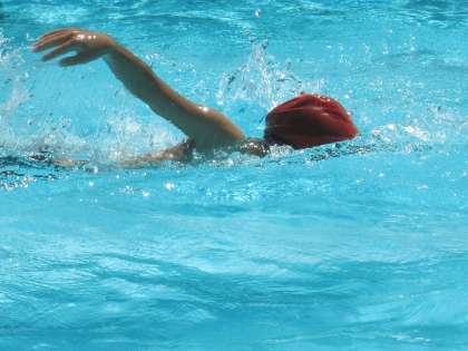 今までの学習を振り返りながらクロールで泳いだ後、何メートル泳げるかを測る泳力テストを行い、その後は宝探しゲームや自由時間を楽しみました。