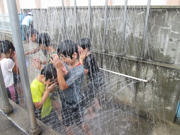 学校に帰ったら、プールのシャワーで汗と泥を落としました。それも楽しい思い出の1つになったようでした。