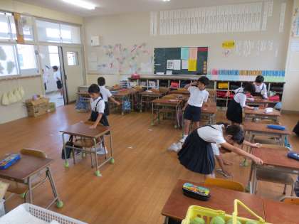 運動会が無事に終わりました。ホッとするとともに、教室は砂とホコリでドロドロです。気持ちを切り替えるためにも、1時限目に大掃除をしました。