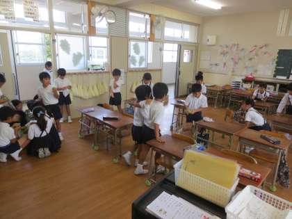 普段の掃除ではしない床拭きで、あっという間にピカピカになりました。段取りや役割も自主的に考えて短時間で終わりました。余った時間で席替えも行い、気分一新。新たな気持ちで学習をスタートすることができました。