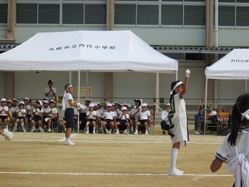 応援団員は、毎日の昼休みに一所懸命に練習してきました。少ない人数にもかかわらず、張りのある立派な声が響いていました。