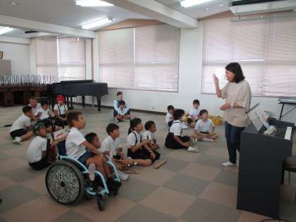 運動会も終わり、2学期初めてとなるひまわりタイムが行われました。今回は音楽をテーマに音楽室で行いました。久しぶりのひまわりタイムにワクワクしている様子が見られました。