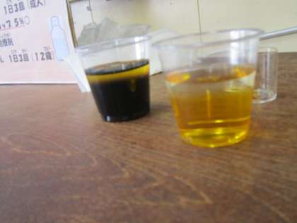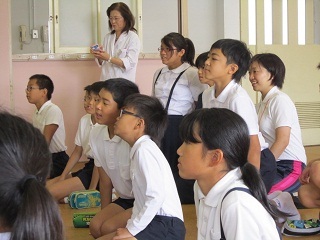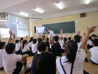 10月9日(木)学校薬剤師の先生に「薬の正しい使い方」についてのお話をしていただきました。薬を服用するときにはなぜ水が良いのかを確かめるために、実際にオレンジジュースやお茶に薬を混ぜるとどんなことが起こるか実験して見せていただきました。オレンジジュースに薬を入れるとどんどん泡が発生しました。次にお茶に薬を入れると茶色だったお茶が真っ黒になりました。子どもたちもこの反応に「うわぁ!」と声を上げて驚いていました。お腹の中でこのようなことが起きていると考えると・・・水で服用することの意味を改めて知ることができました。