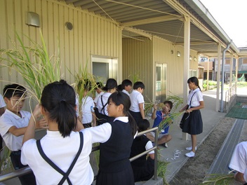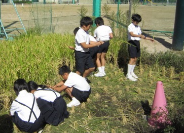 令和最初の収穫です。5年生がコツコツと育ててきた稲が黄金色に実り、今日、5年生みんなで稲刈りをしました。ほとんどの子にとって、初めての体験だったのではないでしょうか。よい思い出にすると同時に、自然の恵みをいただけるありがたさ、米作りに携わっている方々のご苦労、自分たちで栽培する喜び、そういったものを感じてほしいと思います。