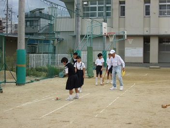 老人会の方々のご協力を得て、グラウンドゴルフ体験をしました。グラウンドゴルフを通じて、地域の方々と触れ合う良い機会になりました。