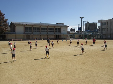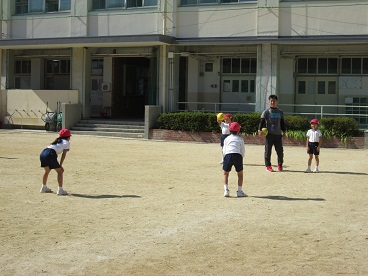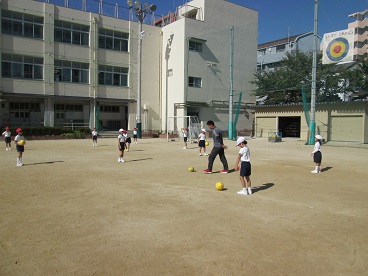 年に3回、区役所の事業の一環として体育の講師が派遣されています。今日1日、全学年で授業をしていただきました。それぞれの運動のポイントをわかりやすく説明していただき、体験しながら楽しく学習していました。