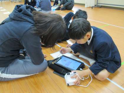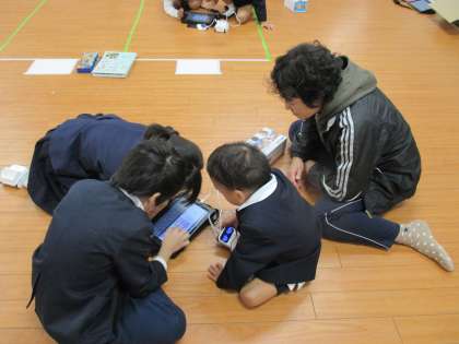 最初は思うように動かず、戸惑っている様子も見られましたが、1年生から5年生のたてわりのグループで、互いに協力しながら進めることができました。授業が終わるころには、もっと触ってみたい!楽しかった!という声を沢山聞くことができました。