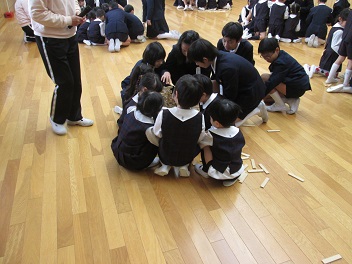 6年生が高倉幼稚園へ行き、交流会をしてきました。お互いに挨拶を交わしたあと、「よろこびのうた」を合奏しました。園児のみんなは鍵盤ハーモニカとハーモニカで、6年生はリコーダーで演奏しました。今日はじめて出会ったにも関わらず、心を一つにすてきな合奏をすることができてすばらしかったです。