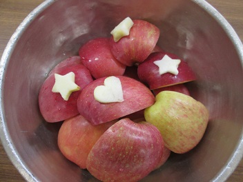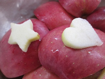 赤いりんごの上に、ちょこんと乗った星やハート。