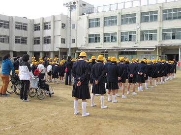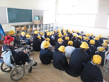 津波を想定して2次避難の練習をしました。50cmほどの津波でも命を落とすことがあるそうです。「水」と思うと、50cmは、たいしたことがないように思いますが、津波の水はプールのように静かで澄んではいません。速い流れに足を捕られたり、泥水の中を流れてくる見えない危険物に襲われたりして命を落とすことになるとのこと。いろいろな事を知っておくのも、自分たちを守ることにつながるのだと改めて思います。
