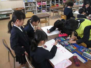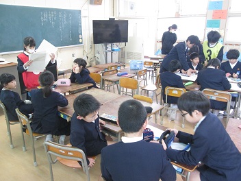 話し合いが終わった班から、作業に取りかかりました。学年の枠をこえて、みんなで協力して進めていました。