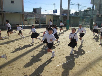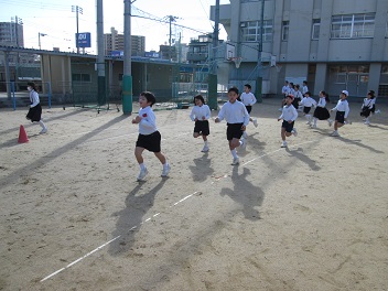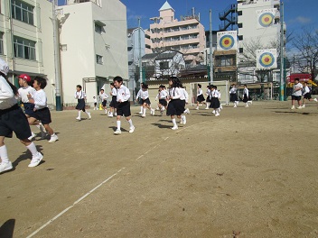 昨日はあいにくの雨模様であったので、今日が1日目となりました。全校児童が運動場へ出て、みんなで体力づくりに励みます。