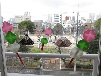 大人だけでなく、子どもたちも図書室の雰囲気づくりに参加しています。3月のひなまつりにちなんで、2年生の女の子が自主的に折り紙を折って来たとのことです。なんとも微笑ましい。