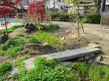 昨年度から本格的に整備を進め、子どもたちが訪れる機会が増えたビオトープ。給食調理員、管理作業員の手で、さらに美しくなっています。