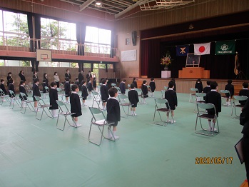 校長先生の第一声は、「お待たせいたしました。」でした。学校へ行けるのが待ち遠しかった1年生と保護者の方々、学校へ迎えるのが待ち遠しかった教職員。お互いが、やっと出会うことができました。この先も見通しがたちにくい状況ではありますが、まずは第一歩、すばらしい学校生活になることを願っております。