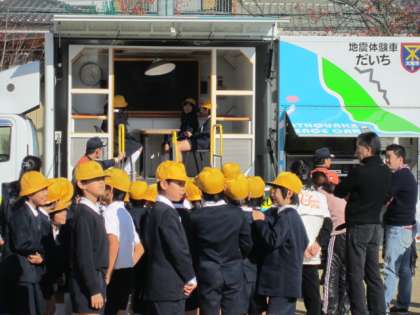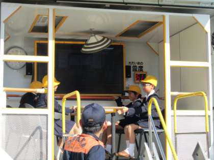 ○「起震車」が、体験した中で一番すごかったです。震度6弱の揺れを体験しました。体と頭がぶっ飛びそうでした。はいているスリッパもぬげて、つくえに手でしがみついていないと飛んで行ってしまうくらいでした。きちょうな体験ができました。