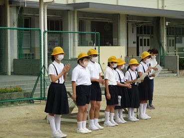 昨年度までの代表委員の司会で始まり、在校生が待つ運動場へ1年生が入場してきました。