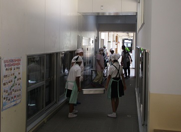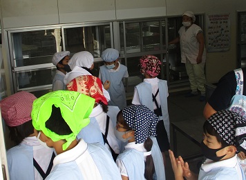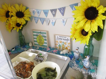 明るく、そして涼やかに彩られた給食室のサンプルケース。