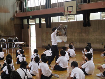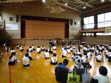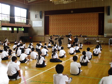 拡大写真を掲げながら、楽器の紹介も丁寧にしてくださいました。最後の曲は、子どもたちに馴染みの「パプリカ」。曲が始まると、しだいに子どもたちの身体や口元が動きはじめました。ですが、子どもたちなりに今の社会情勢を読み取っているようで、マスク越しに小さな声で口ずさんでいました。本来ならば、子どもたちの歌声が響き渡ってもよい瞬間です。心ゆくまで歌わせてあげたいな、と思いました。