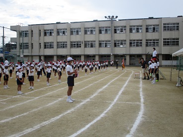 高学年の児童たちが、放送や司会など自分たちの役割に一所懸命に取り組んでいました。写真は、「優勝旗・優勝杯の返還」「誓いの言葉」の練習の様子です。
