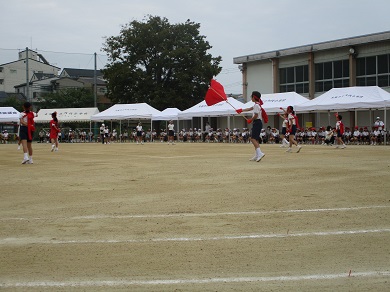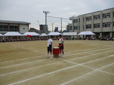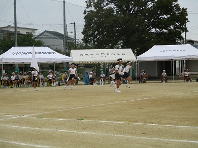 応援団です。感染症対策のため、大きな声での応援合戦はできませんでしたが、みんなで心を合わせて応援しました。