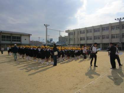 本日、地震と津波を想定した避難訓練を実施しました。6434人の方が亡くなられた阪神・淡路大震災が発生して、明日で20年になります。近い将来、大規模な東南海・南海地震が必ず発生するとも言われています。大災害が発生しても被害を最小限にとどめられるように、また、自分の命を自分でまもれるようにと訓練に取り組みました。