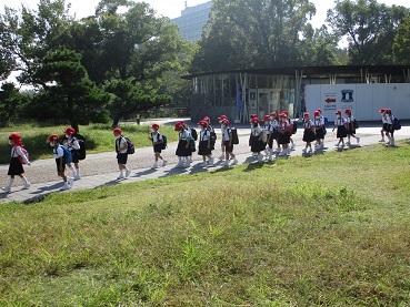 低学年で行くはじめての校外での活動になりますが、マナーよく、道の端を並んで歩くことができました。