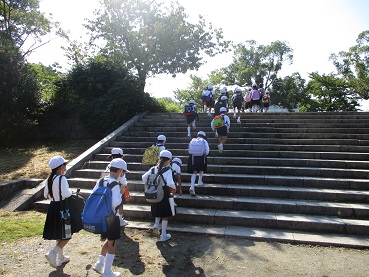 そのあと大阪城へ向かって出発。はじめて来る児童も多く、どんなふうになっているのかと興味津々のつぶやきが聞こえてきました。