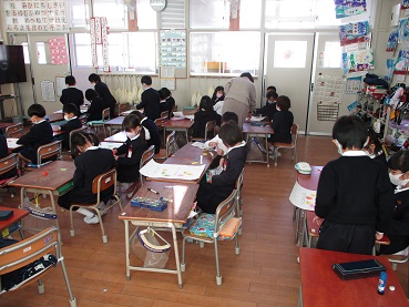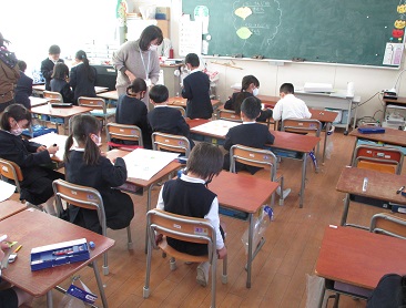 長年、本校にスクールカウンセラーの方が来校しています。そのスクールカウンセラーの方と連携して、今日は1年で授業をおこないました。内容は、心と言葉についての学習です。葉っぱをかたどった画用紙に、自分が思う「いい感じの気持ち」「いやな感じの気持」の言葉を書きこみ、みんなで「心の木」に貼っていました。