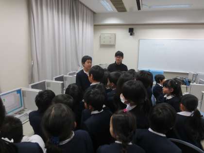 各クラブの部長が活動について説明してくれました。また、「パソコン、イラスト」クラブではペイントで絵を描かせてもらったり、球技クラブでは実際にバットを振らせてもらったりしました。