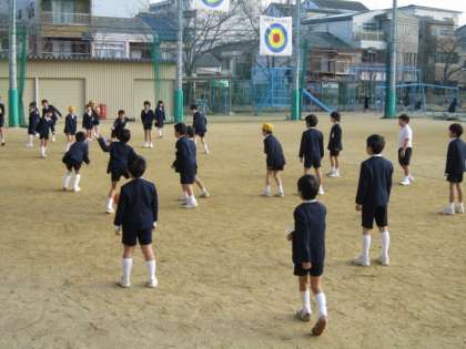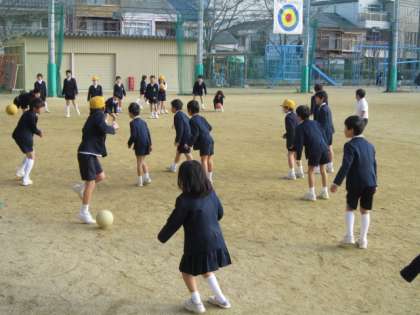 昨日の朝、気づいたのですが、3年、4年、6年の子どもたちが、登校してすぐ一緒にドッジボールをしていました。今朝も同じようにチャイムが鳴るまで楽しそうに遊んでいました。子どもたちに聞いてみると、「3・4年で一緒にドッジやろうということになって、おんなじくらいの強さになるようわけてん。そしたら、6年がよしてって来たから二つに分かれてもらった。」とのことでした。投げ方も年度当初に比べ様になってきたように思います。