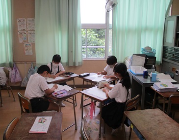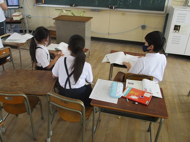 この単元の学習は、学級担任と習熟度別少人数学習担当者が連携し、少人数学習の形態をとっています。子どもたちは、班ごとに2つの教室に分かれての学習です。いつも以上に子どもたちと教員が関わり合いながら学習を進めることができているように思います。