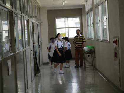 教室を出発し理科室、パソコン室、ゴールの多目的室まで、問題を解きながら進みました。