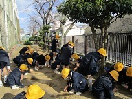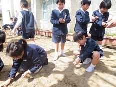 昨日、環境教育の一環として、校舎南面にグリーン絨毯を作ろうと、クローバーの種を蒔きました。実は今年度初めにもクローバーの種を遊具付近、鉄棒付近に蒔きました。しかし、耕しが足りず、鳥たちに食べられたのか、芽を出さずに終わってしまいました。今回は保護者の方が昨日ボランティアで校舎南面を耕してくださいました。そこに、今日3〜5年生の子どもたちが種まきをしました。今年は成功するといいのですが。子どもたちとともに観察していきたいと思います。