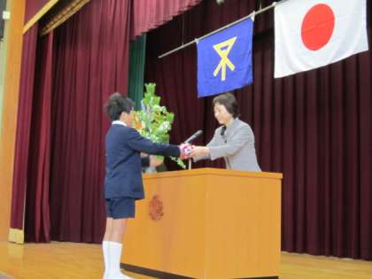 本日平成26年度の修了式を実施しました。5年生の男子が児童を代表し、修了証を手にした後「みんなに頼られる6年生になりたいと思います。」という決意を述べました。